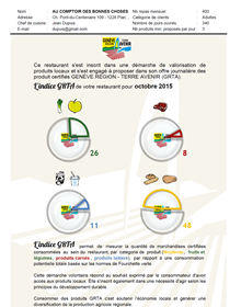 Afin de valoriser le travail des restaurants collectifs labellisés, la marque de garantie GRTA a introduit l’Indice GRTA qui permet de mesurer la quantité de marchandises certifiées, consommées au sein du restaurant, par catégorie de produit (féculents / fruits et légumes / produits carnés / produits laitiers), par rapport à une consommation potentielle totale basée sur les normes de Fourchette verte. Cet indice est calculé grâce au site internet interactif www.restaurationcollective.ch
